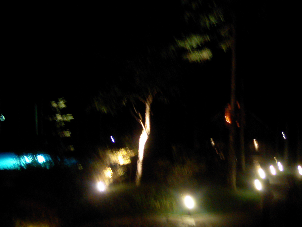 夜の教会とプールです。